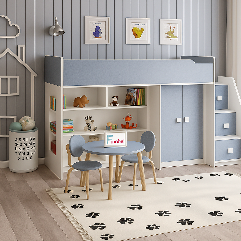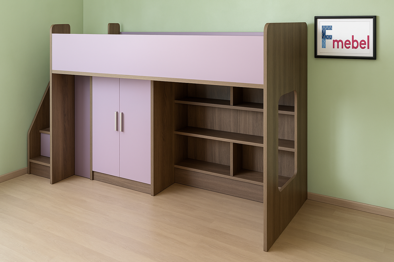 2. Стандарт: ДСП 18 мм, кромка 2 і 1 мм, телескопічні напрямні, класичні петлі, є декоративні вирізи, округлення в столах, поличках, бортах, сходах. Меблі виглядають як на фото і є більш цікавими і комфортними. Ящики закриваються тихіше і плавніше. Використовується високоякісна фурнітура ТМ Muller , яка має гарантію 10 років. Рекомендоване навантаження на спальне місце до 120 кг.