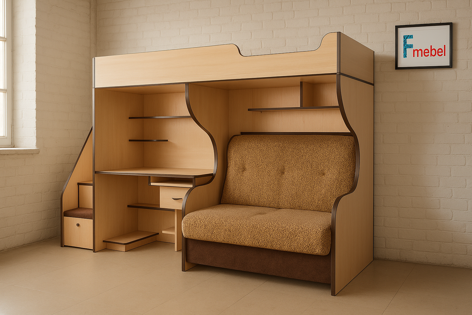 Кровать-чердак с местом под диван Кентукки Fmebel 80x200