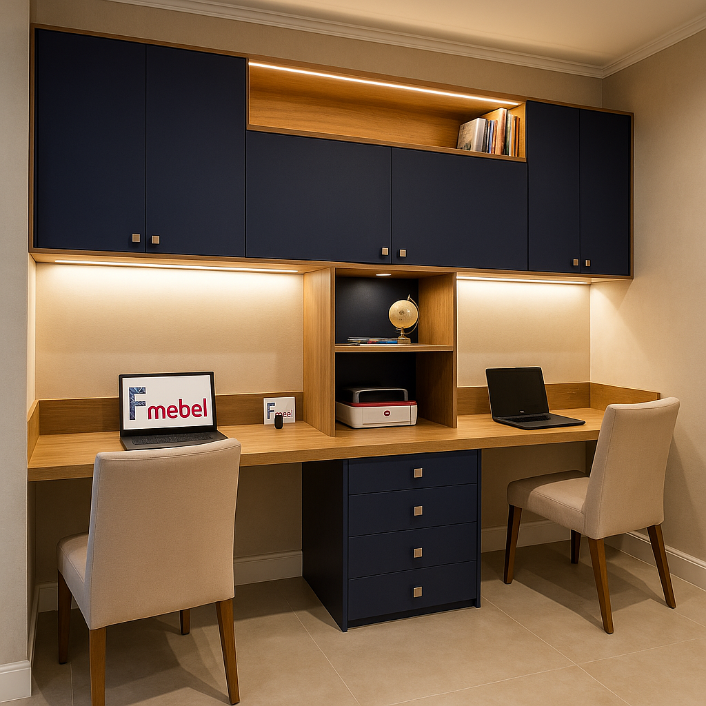 Ціна вказана за 1 м.п. та висоту 2 м. Ціна менше 1 м.п. тарифікується як за 1 м.п. Ви можете замовити необхідну вам довжину та висоту.Глибина шафок, поличок - 350 мм. Глибина столу - 600 мм, висота столу 750 мм.