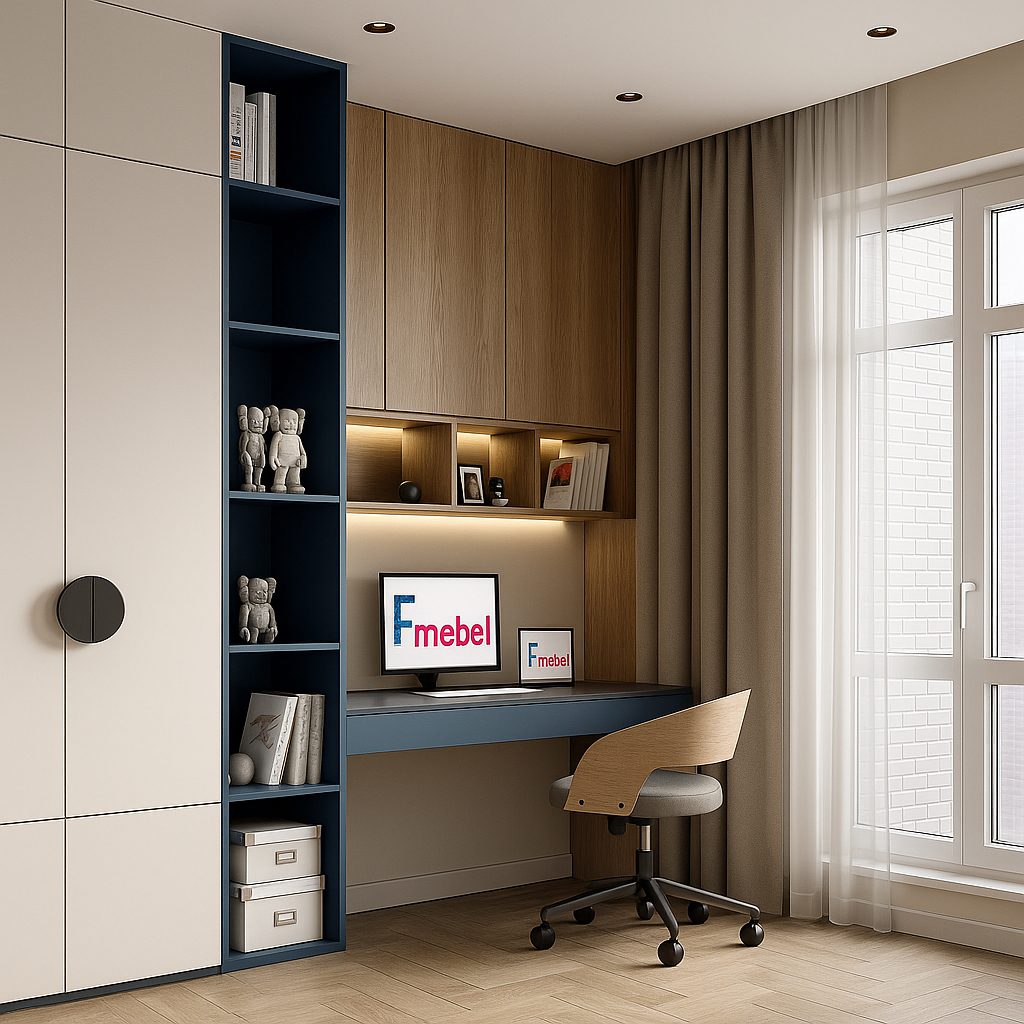 Ціна вказана за 1 м.п. та висоту 2 м. Ціна менше 1 м.п. тарифікується як за 1 м.п. Ви можете замовити необхідну вам довжину та висоту.Глибина шафок, поличок - 350 мм. Глибина столу - 600 мм, висота столу 750 мм.