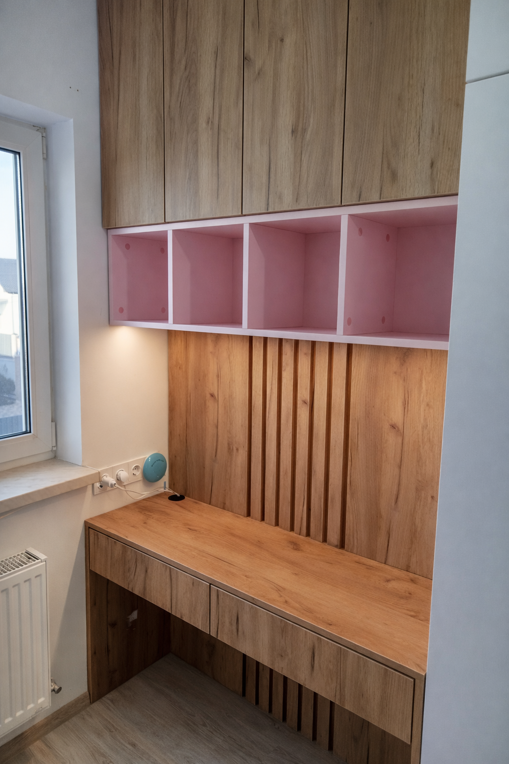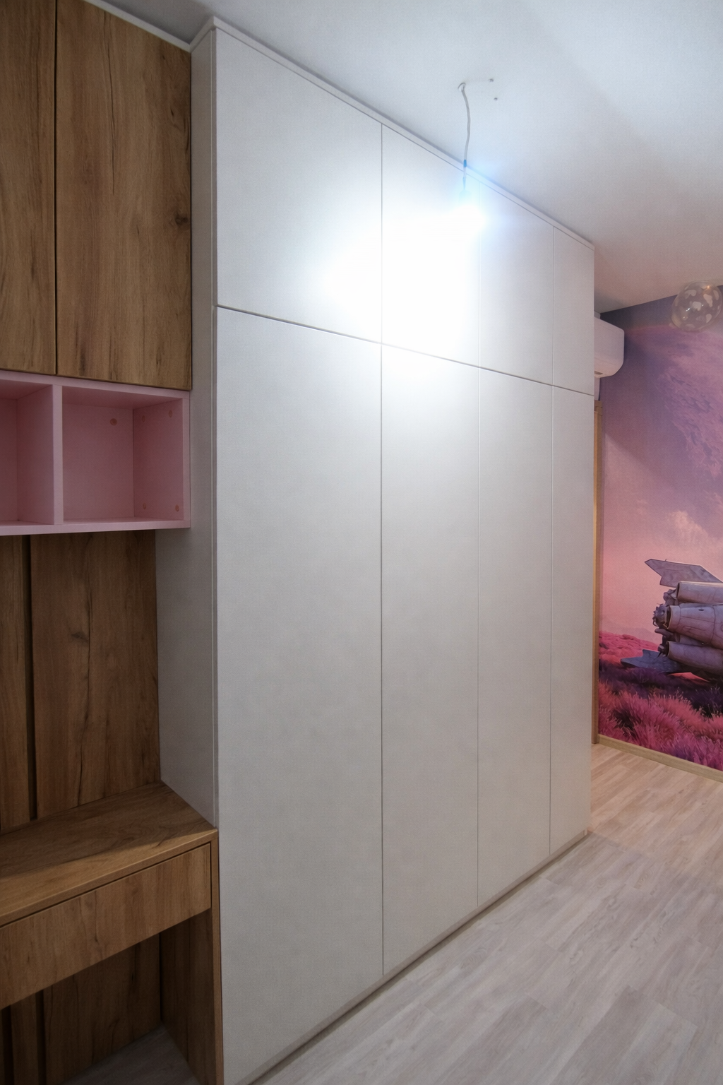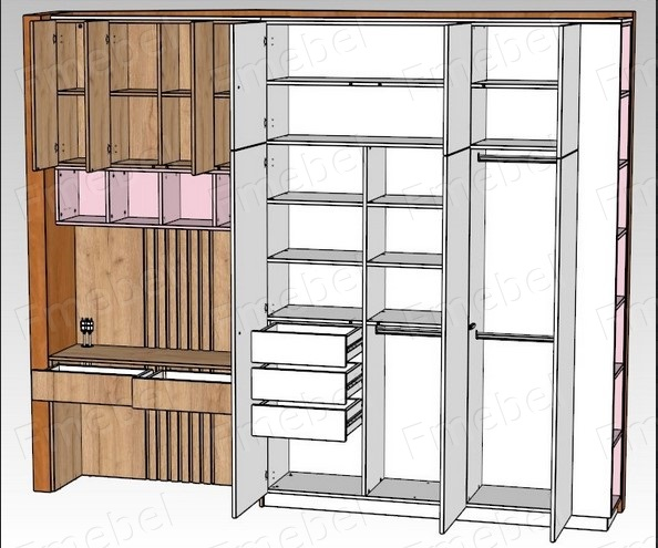 1. Базовий: ДСП 18 мм, крайка 0,6-0,8 мм, невидимі та стикувальні торці не покриваються кромкою, телескопічні напрямні, класичні петлі. У шафах за умовчанням розміщена тільки штанга для плічок, якщо вам потрібні полички або ящики, вони замовляються окремою позицією. (Див. додаткові товари).