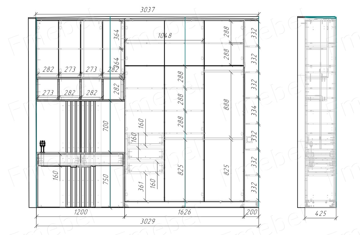 Меблі можуть мати 4 варіанти глибини: 300 мм, 400 мм, 500 мм, 600 мм.